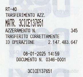 Registratore telematico RT-40, omologato per la trasmissione telematica dei corrispettivi. Prezzo €220 + iva