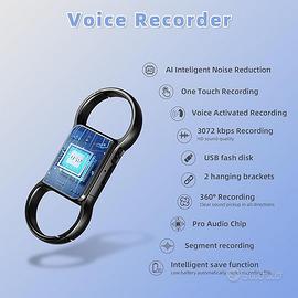 Compatto e discreto, registra in alta qualità e ha funzione di attivazione vocale (inizia a registrare solo quando rileva suoni o voce, risparmiando memoria e batteria).