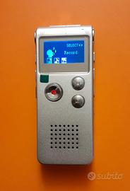 Vendo registratore voce/musica con memoria da 8Gb che consente 50 ore di registrazione, ottimo per lezioni e conferenze, per comunicazioni telefoniche, ricaricabile con un normale caricabatterie per cellulare. Altoparlante interno e possibilità di collegare le cuffie e microfono esterno. Le registrazioni si possono anche scaricare su PC.