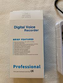 Registratore vocale in buone condizioni. Qualche segno di usura, ma perfettamente funzionante. Cavo USB rovinato (presenza di scotch nero), ma perfettamente funzionante (testato prima della vendita). Con display per visualizzare lo stato della registrazione, pulsanti fisici per il controllo (Record, Stop, Play/Pause) e altoparlante. Ideale per registrare lezioni universitarie, interviste, riunioni di lavoro o per prendere appunti vocali. Supporta formati audio comuni come MP3 e consente il trasferimento dei file al computer tramite USB.