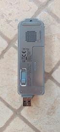 Registratore vocale digitale compatto con 2 GB di memoria interna, capace di registrare fino a 536 ore (modalità LP) in formato MP3. Dispone di microfono stereo S-Mic, connessione USB diretta, riduzione del rumore e scene select per ottimizzare l'audio. Include display LCD e slot microSD.