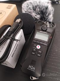 Vendo registratore portatile Zoom H1N value pack completo di tutti gli accessori originali (custodia rigida, cavo e alimentatore USB, protezione microfoni in schiuma) + deadcat di qualità antivento + 2 schede micro SD Lexar da 32Gb. Usato pochissime volte, vendo per cambio progetto.