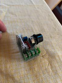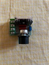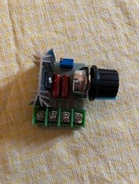 Vendo causa doppio acquisto regolatore per luci , mola o trapano elettrico . Praticamente regola il n di giri cosicché esempio se avete una mola che gira veloce e non riuscite ad affilare i coltelli con questo circuito potete tramite un potenziometro regolare la velocita’ di giri Semplicissimo da installare due fli per ingresso corrente e due morsetti per uscita per ritiro a mano Qualsiasi verifica zona saronno (va)