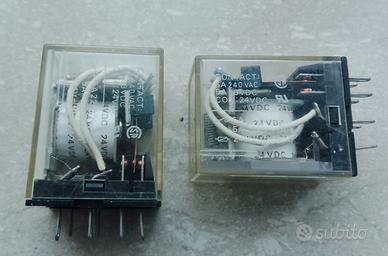 Due relè OMRON mod. MY3-US-SV con bobina a 24 volt dc Due scambi 5 Amper a 240 VCA Mai utilizzati ma privi di zoccolo. vendo come da foto.