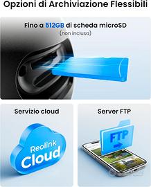 【Registrazione Continua o su Movimento】 Puoi scegliere tra registrazione 24/7 o solo su eventi per risparmiare spazio. Questa telecamera a batteria supporta schede microSD e Cloud Reolink, offrendo la massima flessibilità come videocamera da esterno.
