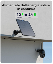 【100% Senza Fili & Configurazione Semplice】Questa telecamera batteria funziona con Wi-Fi a 2,4/5 GHz ed è alimentata dal nuovo pannello solare da 6 W, liberandoti dai frequenti problemi di ricarica della batteria. Facile da installare, potrai creare il tuo sistema di sicurezza indipendente in pochi minuti