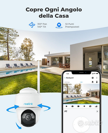 【100% Senza Fili & Batteria Solare】La facile installazione senza strumenti complicati e senza cavo rende questa telecamera wi-fi esterno con pannello solare adatta per l'uso ovunque. Dotata di una batteria ricaricabile, anche puoi usarla con il pannello solare Reolink per evitare il fastidio di ricariche frequenti.