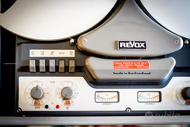 RtR Revox G36, 2 tracce 9,5-19 a valvole proveniente dalla Svizzera uniproprietario, restauro a cura di Luca Maria Olgiati certificabile, testine 80%, valvole 80% , matr.35451. La macchina ha partecipato a 2 edizioni dell'Apulia Hifi Show nella saletta Novaudio come riferimento. Prova di visione e ascolto presso il mio studio previo appuntamento. Video disponibile a richiesta. Bobine e nab non inclusi. Spedizione disponibile gratuita, non fornisco garanzia.