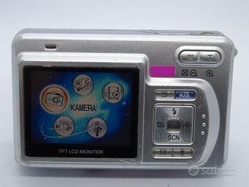 Macchina fotografica funzionante in condizioni estetiche medie , con vari segni di usura e graffi.