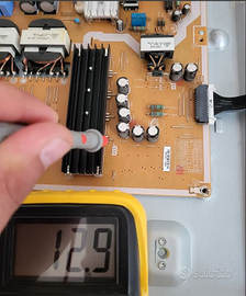Inoltre sulla scheda di alimentazione, il circuito di comando/alimentazione delle barre LED presenta dei componenti danneggiati. Sono presenti le restanti tensioni (5,3 e 12,8 volts).