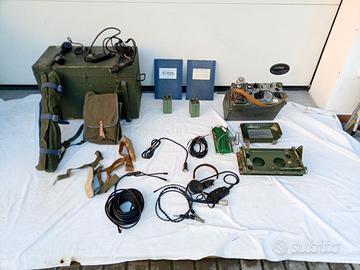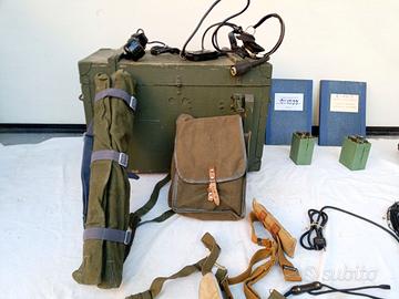 Per inutilizzo si vende stazione radio militare russa R107 in cassa di legno con tutti gli accessori compresi manuali originali, manuale delle batterie, libretto manutenzione periodiche batterie, formulario, libretto manutenzione radio in russo e in tedesco con relative annotazioni e timbri. E' stata utilizzata nella banda dei 6metri. Caratteristiche tecniche: RTX spalleggiabile modulazione FM copertura in frequenza 20-52 Mhz in due gamme sintonia continua Accordatore d'antenna manuale Con adattatore SO239 per utilizzarla con antenne da radioamatore 4 canali preselezionabili meccanicamente Potenza 1.5 W Alimentazione duale con 2 batterie di tipo HKN20 da 2,4 volts In cassa di legno con tutti gli accessori Proviene direttamente dalla ex DDR. Ottimo apparato in dotazione agli eserciti dell'URSS, della R.P. di Bulgaria, della DDR. Alimentato con due tensioni separate da 2,4 V, opera nella gamma FM Visualizzazione della frequenza attraverso un oculare. La radio perfettamente funzionante non viene utilizzata da anni ed è stata custodita con cura. Abbinata al suo alimentatore/caricabatterie originale e cavo di collegamento (non facilmente reperibili). Si fornisce anche una guida all'utilizzo in italiano. Dato il peso della cassa non spedisco.