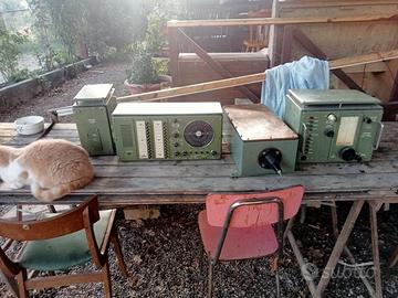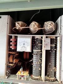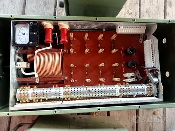 Sistema di ricetrasmissioni onde corte composto da un trasmettitore, un accordatore motorizzato, alimentatore e ricevitore.