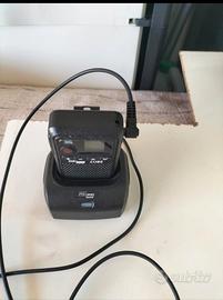 Fornito con: batteria agli ioni di litio 3,7V/1200mAh, carica batterie rapido da tavolo, microfono auricolare con funzione Vox*, clip da cintura, cordoncino da collo.