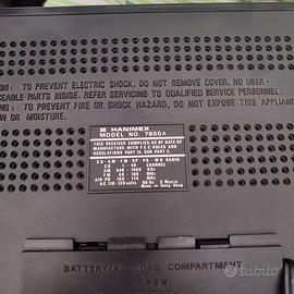 l'unica accortezza durante la selezione dei tasti delle frequenze è utilizzare il tasto cb-in contemporanea con gli altri selettori a causa dell'interruttore con la molla estesa,non è stato possibile trovare una sostituzione,allegherò le istruzioni di come comportarsi per la selezione , per il resto apparato a base fissa trasformabile come portatile a vostro piacimento,vano batterie perfetto e senza ossido, cavo per la rete elettrica con spina a 220v perfetto,attacco per antenna esterna ed alimentatore a 12v [non incluso] perfetti,funzionamento fluido e con pochi rumori per un apparato che comunque ha piu di 40 anni!!!!!!!