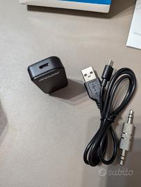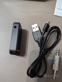 Vendo ricevitore Bluetooth come nuovo, comprato ma mai usato. Confezione intatta, presenti tutti i componenti: corpo principale, adattatore maschio-maschio jack 3.5, cavo con jack maschio-maschio 3.5 (come prima ma più lungo), cavo per ricarica USB da un lato e micro-USB dall'altro.
