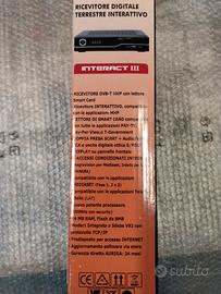 Ricevitore digitale terrestre interattivo compatibile con applicazioni MHP, con lettore smart card per le applicazioni PAy TV,PAY -per -View, T Governament, doppia presa scart +audio/video RCA, uscita digitale ottica S/PDIF.