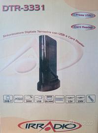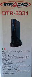 Irradio DTR 3331. Fonte segnale: Terrestre, Tipo sintonizzatore: Digitale. Formati video supportati: MPEG2, MPEG4, Formati audio supportati: MP3, Formati immagini supportati: JPG. Voltaggio di ingresso: 230V. Larghezza: 1,3 cm, Profondità: 2,7 cm, Altezza: 8,5 cm. Cavi inclusi: AC