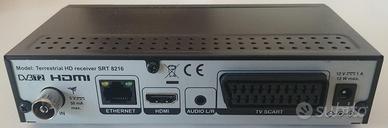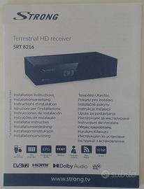 Vendo ricevitore digitale terrestre domestico Strong SRT 8216, praticamente nuovo. Con telecomando. Supporta anche il nuovo sistema di trasmissione DVBT2! Ha ingresso ethernet con uscite HDMI e SCART.