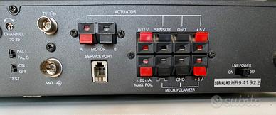 Ricevitore Hirschmann CRP 3300A 2SAT con Hirmit OSD (uscite audio/video, ingresso e uscita TV, 3 connessioni scart, connessione per controllo motore e polarizzazione meccanica, porta di servizio per aggiornamenti internet, alimentazione commutabile per LMB sul dispositivo)