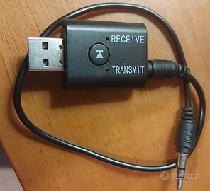 Ricevitore/Trasmettitore audio Bluetooth 2 in 1...Trasforma il vostro TV/PC/CD o altro dispositivo non bluetooth in dispositivo bluetooth...in modalità "Transmit" può trasmettere l'audio del TV/PC/CD a cuffie 🎧 o auricolari Bluetooth, in modalità "Receive" può ricevere l'audio in altoparlanti non bluetooth...insomma le specifiche le trovate su Google ma basta alternare il cavetto da 3.5 mm su Transmit o Receive a seconda dell'esigenza e premere il pulsante per la ricerca(solo la 1^ volta) e il gioco è fatto.