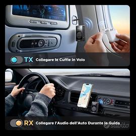 [ Ampia Compatibilità ] Come Trasmettitore Bluetooth, può essere collegato a un televisore o a un computer non Bluetooth per abbinarlo a cuffie o altoparlanti Bluetooth. In modalità ricevitore, può essere collegato a dispositivi di ricezione come automobili, aerei e stereo per l'accoppiamento Bluetooth con telefoni cellulari o tablet