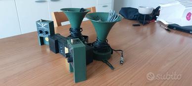 Vendesi richiami a cassette fonofilm ETG, con svariati canti per anatidi ed uccelli migratori. Adatto per caccia e birdwatching. Si vendono in blocco: N 2 riproduttori N 13 cassette fonofilm N 2 trombe N 2 custodie in similpelle Compresi di cavi a pinza per poli della batteria 12volt e cavi per connessione tromba altoparlante. Prodotto in ottime condizioni estetiche e conservative PREFERIBILMENTE CONSEGNA A MANO