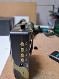 RICHIAMO PER UCCELLI MP3 CON TELECOMANDO FONOFILO REGISTRATORE FISCHIETTO NOVITA’ 2025 DI ECCEZIONALI CARATTERISTICHE Il richiamo può utilizzare due memorie: usb e pen drive Sulla pen drive abbiamo inserito 210 canti (tordi allodole merli fringuelli quaglie ghiandaie beccafichi acquatici e tantissimi altri) tutti canti professionali Sulla usb canti di colombaccio E super canti tordi allodole merli in versione protetta E' possibile dal telecomando aumentare/abbassare il volume, cambiare modalità, cambiare memoria etc. etc. La portata utile del telecomando è di circa 100 metri ed è affidabile.