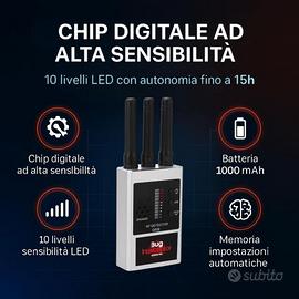 Il rilevatore G638pro MK4 è il compagno ideale per garantire la propria privacy personale, offrendo un valido aiuto nella individuazione di dispositivi come mini telecamere WiFi nascoste, microfoni spia per cellulari, localizzatori GPS e dispositivi di intercettazione audio wireless. Questo strumento di rilevamento identifica facilmente tali dispositivi anche in luoghi difficili, grazie alle sue dimensioni compatte che consentono di trasportarlo ovunque, rendendolo ideale per viaggi, controlli negli hotel, uffici e altro ancora. Dotato di un chip digitale ad alta sensibilità, Il rilevatore G638pro MK4 è il primo strumento a mostrare l'efficienza del segnale attraverso dieci luci a LED. Grazie al chip di controllo digitale integrato, è possibile regolare la sensibilità premendo un pulsante, mentre la funzione di memoria registra le impostazioni dell'ultimo utilizzo per un rapido avvio. La batteria al litio da 1000mAh garantisce fino a 15 ore di funzionamento continuo, con la possibilità di ricarica rapida quando necessario. Applicazione: Rilevamento di microspie wireless o localizzatori GPS nell'auto o nell'ufficio. Individuazione di comportamenti anomali del cellulare. Monitoraggio delle radiazioni provenienti da stazioni base o droni. Individuazione di segnali di telefonia mobile e sistemi di sorveglianza wireless. Rilevamento di radiazioni elettromagnetiche dannose. Individuazione di dispositivi nascosti in ambienti come bagni, hotel, spogliatoi e uffici governativi.