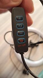 Luce LED professionale per video, make-up e contenuti social. Perfetta per creatori di contenuti, videochiamate, streaming o trucco, questa Ring Light da 12 pollici (HX-300) garantisce un’illuminazione uniforme e naturale per foto e video di alta qualità. Dotata di supporto regolabile per smartphone e telecomando a filo USB con 4 funzioni: