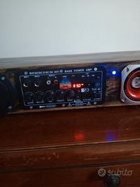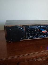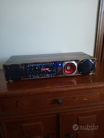 Riproduttore Radio System Loren HI FI riproduttore MP3 USB SD card, Radio FM, caraoche due porte connettori 6mm per microfono, telecomando, toni alti bassi subwoofer tweeter volume microfono eco microfono, alimentazione 12 v. 220 v. in dotazione alimentatore 12 v. 2 amp. disponibile ad Adria Rovigo, no spedizione.