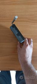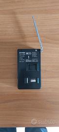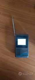 Schermo CRT in bianco e nero da circa 2", ricezione VHF/UHF, alimentazione a batterie o alimentatore esterno.
