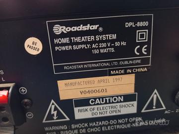 Amplificatore Roadstar DPL 8800 funzionante. Questo è un amplificatore che può funzionare sia in stereo con 2 case o come home teatre con 5 casse in questo caso si avrà un effetto cinema. Io l'ho comprato usato e non ho le