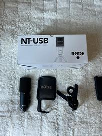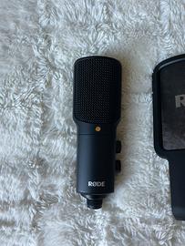 Microfono USB professionale Rode, ideale per registrazioni vocali, voice-over, streaming e contenuti social. Collegamento diretto USB senza necessità di scheda audio. Qualità audio pulita e dettagliata, con pattern cardioide per ridurre i rumori di fondo. Inclusi nella confezione: supporto da tavolo, filtro anti-pop Rode e attacco per asta.
