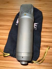 Microfono a condensatore perfetto per registrazioni professionali di voci e strumenti, perfettamente funzionante, utilizzato ma mai caduto a terra o rovinato, presenta naturali imperfezioni del metallo mostrate in foto. Consegno nella scatola originale, comprende shockmount, pop filter, cavo XLR e cover anti-polvere.
