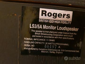 Rogers ls3/5 11 ohm numeri progressivi tutte originali suono divino ne ho avute diverse .queste si fanno pilotare meglio dlelle 15 ohm e suono iu aperto in particolare questa serie di questo periodo questa 11 ohm suono favoloso . Gentilmente questo annuncio rivolto solo a competenti . Il mio cell per evntuali chiarimenti 3803143398