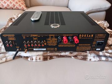 Amplificatore Roksan K3 versione bluetooth, 140 watt su 8 hom, pilota qualsiasi diffusore, uscite pre-out, Bypass Av, ingressi phono MM, Cd, Tuner, Aux, muting, tasto stand-by, tenuto in modo maniacale con tappetino antipolvere superiore, no fumo, usato pochissimo veramente come nuovo, completo di telecomando originale, antenna bluetooth, istruzioni e imballo originale. Possibilità di ascolto e ritiro presso di me. Prezzo leggermente trattabile, NO SCAMBI, solo a veramente interessati, esclusi perditempo.