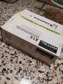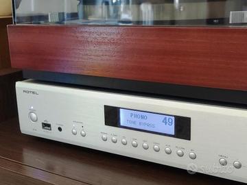 vendo come da annuncio e foto originali del prodotto ottimo amplificatore ampli Rotel a14 il più potente della serie, grigio satinato. ben suonante. Rodato e con circa 100-120 ore di utilizzo totale. COmpleto di tutta la sua dotazione telecomando, scatola. vendo per passaggio ad altra elettronica ed accorpamento di 2 impianti. lho trovato adatto a diffusori morbidi perchè ha un ottimo dumping factor e frena bene le frequenze spurie dei diffusori. molto potente, riesce a pilotare anche cose difficili perchè ha un ottima presenza ed un ottimo tiro sui diffusori. non spedisco