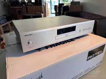 Lettore CD con sofisticata meccanica di alta precisione. Sistema di conversione D/A Texas Instruments serie Premium a 32bit/384KHz. Filtri d'uscita analogici custom. Sezione di alimentazione indipendente per circuiti digitali e analogici. Condensatori ultra-veloci. Uscita digitale coassiale e uscita analogica. Di-splay grafico VFD su 2 righe. Comando 12V trigger. RS-232. Rotel Link. Telecomando in dotazione.