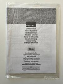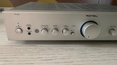 Amplificatore integrato Rotel RA 06 70w per canale su 8 ohm, uscita pre, ingresso phono. Tenuto in condizioni eccellenti, unico proprietario, acquistato nuovo. Con telecomando e manuale originale. No imballo.