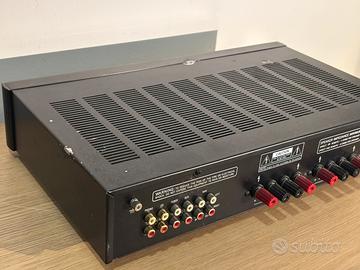 Amplificatore integrato da 30W per canale con alimentatore toroidale che garantisce buona capacità di pilotaggio, dotato di stadio phono che permette di utilizzarlo con ogni giradischi, sulla scocca superiore sono presenti delle macchie sulla vernice ma non compromettono il funzionamento.