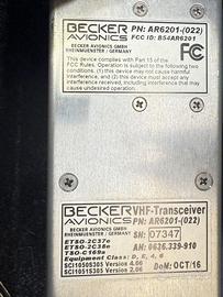 Ricetrasmittente aeronautica BECKER TSO utilizzabile anche per Aviazione Generale, perfetto stato estetico e di funzionamento, sbarcata da elicottero di AG per installazione suite Garmin.
