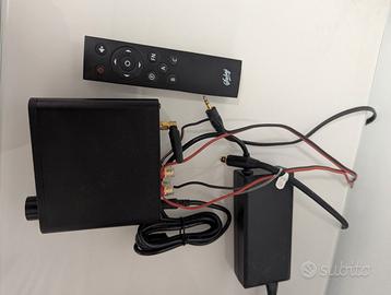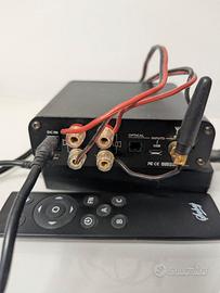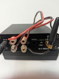 Vendo per completo sgombero dell'immobile. Ottimo prodotto, da me usato per collegare contemporaneamente TV, smartphone, giradischi e, in uscita, due casse 100W ciascuna. Tutto ha funzionato perfettamente con ottima qualità audio. Dimensioni articolo: LxPxA: 10,6 x 11,9 x 3,6 cm Tensione220 Volt Produttore Shenzhen Dahao Technology Co., LTD. Informazioni: Supporta Aux ingresso analogico 3,5 millimetri USB / ottico / Bluetooth Utilizzando STA326 come chip di amplificatore, VT1620A come codificatore audio USB, CS8422 come circuito integrato ricevitore digitale, CS5341 come convertitore analogico-digitale. Uso di Bluetooth 4.2 programma di versione, supporta apt-X, con un design antenna esterna. Potenza 80Wx2, display OLED, gli effetti sonori EQ e tecnologia DSP Frequenza di campionamento ottico fino a 192 kHz