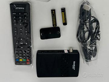 In questa inserzione è presente un ricevitore HD SAGAF SUD-0507 completo di telecomando, cavo HDMI e adattatore di alimentazione. Il dispositivo è progettato per l'uscita ad alta definizione ed è adatto per varie configurazioni di intrattenimento. Nella confezione sono inclusi accessori essenziali che ne migliorano l'usabilità. Il ricevitore è compatto e facile da installare, rendendolo una scelta eccellente sia per uso domestico che portatile. Ideale per coloro che desiderano migliorare la propria esperienza visiva con prestazioni di qualità.