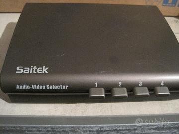 Selettore audio-video manuale SAITEK 1 ingresso e 4 uscite, in ottime condizioni Dimensioni : L 18 X P 14,5 X H 5 cm Spese di spedizione escluse