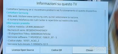 Vendo Smart TV Samsung 50 pollici Ultra-Hd 4K Modello RU8000 Per passaggio a TV più grande Come nuova