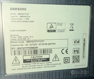 Samsung 65” QLED 4K (QE65Q70T) – Per ricambi o riparazione(VALORE TV FUNZIONATE 500/600€) Vendo TV Samsung QLED 65 pollici 4K, modello QE65Q70TATXZ. 📺 Condizioni estetiche: Televisore in ottime condizioni, schermo e scocca ben tenuti, senza danni evidenti. ⚠️ Difetto: La TV presenta un problema al display: inizialmente metà schermo risultava più scura, mentre l’altra metà funzionava correttamente. Per un breve periodo il problema sembrava risolversi da solo, ma successivamente è tornato peggiorando. Attualmente una parte dello schermo è molto scura e quasi non visibile. 🔧 Ideale per: - pezzi di ricambio (alimentatore, schede, pannello, ecc.) - chi sa ripararla (VALORE TV FUNZIONANTE 500/600€ - tecnici / appassionati 💡 Probabile problema di retroilluminazione o pannello 📦 Completa di telecomando / piedini 💰 Prezzo: 180 trattabile 📍 Ritiro a mano Contattami per info o foto 👍
