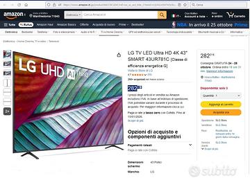 vendo TV LG 43UR781 larghezza 109,2 cm (43") 4K Ultra HD Smart TV Wi-Fi Nero