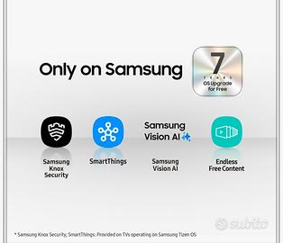 Vendo Smart TV Samsung nuovo, mai utilizzato, imballato in confezione originale ed in garanzia. Prodotto completo di accessori come da foto.