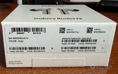 Vendo Samsung Galaxy Buds FE colore Gray, completamente nuove e ancora sigillate, mai aperte né utilizzate. Prodotto originale Samsung, ideale anche come regalo. 🔹 Colore: Gray 🔹 Condizione: NUOVE (scatola sigillata) 🔹 Mai attivate 🔹 Nessun segno di utilizzo 🔹 Acquisto recente Cuffie comode, con ottima qualità audio e perfette per l’uso quotidiano, chiamate e musica. Prezzo poco trattabile