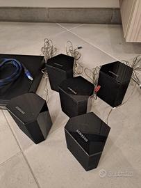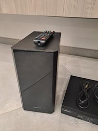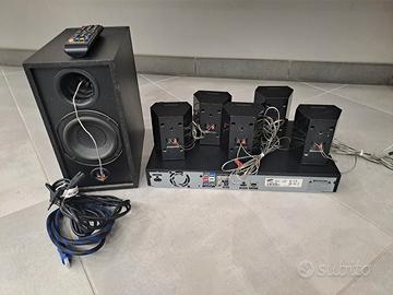 Impianto audio samsung dolby 5.1 con lettore blu ray. tipologia in filodiffusione, non necessita di Bluetooth e Wifi. ottime condizioni, audio e video perfetti. vendo a malincuore. 5 casse, 1 woofer, lettore bluray, cavi ottico e hdmi, telecomando. pronto per la spedizione